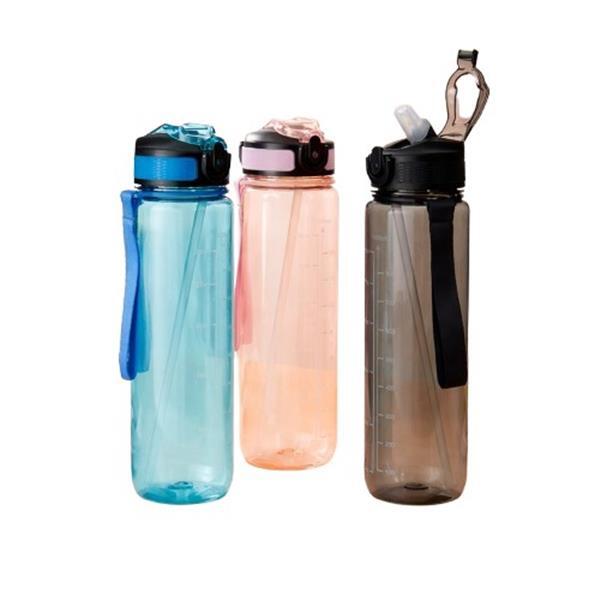 Squeeze plástico livre de BPA com capacidade máxima de 1,05 Litros e marcação de volume de até 1 Litros. Possui tampa rosqueável com bico flip, tampa protetora, botão de acionamento com trava de segurança. Acompanha canudo interno em plástico e alça para transporte em nylon. Altura : 28,5 cm Largura : 7,8 cm Circunferência : 5,5 cm Peso aproximado (g): 170