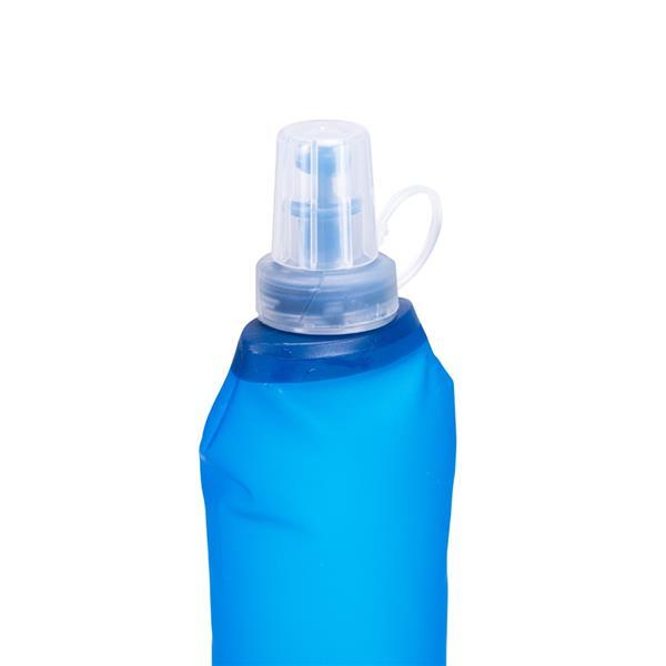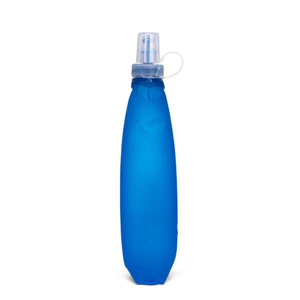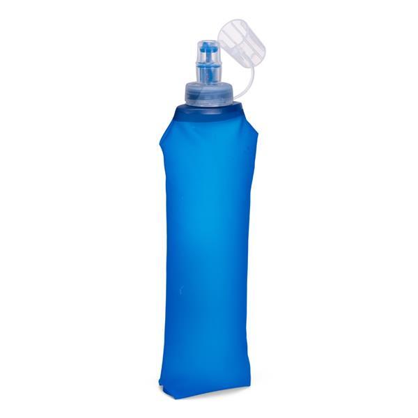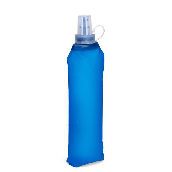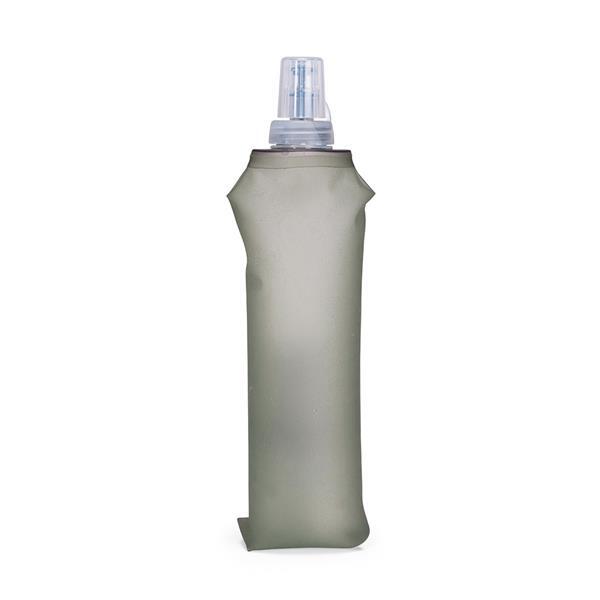 Squeeze dobrável feito em poliuretano termoplástico (TPU) livre de BPA. Possui capacidade máxima de 500 ml, bico rosqueável com protetor de encaixe em plástico e topo em silicone macio, que permite o consumo de líquidos ao morder levemente a ponta após inclinar o squeeze.