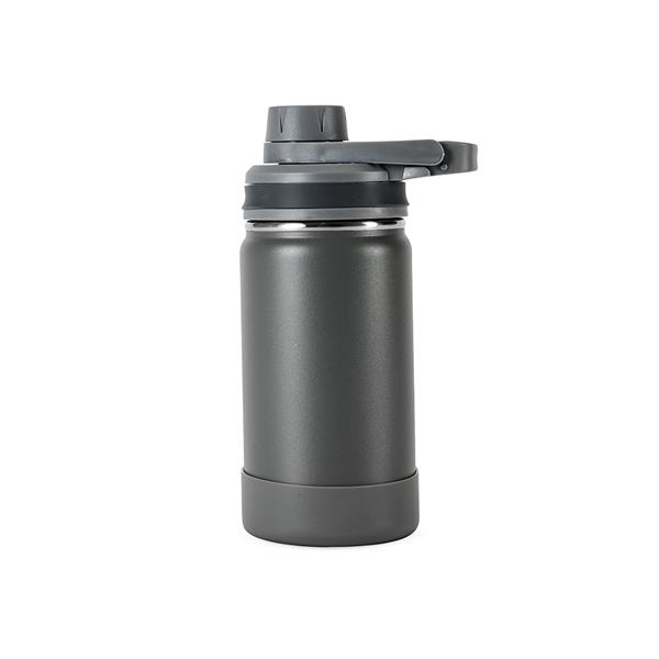 Garrafa térmica em inox, pintura eletrostática e capacidade para até 350 ml. Conta com estrutura de parede dupla e vedação a vácuo, permitindo conservar a temperatura de líquidos por mais tempo. Possui tampa rosqueável com protetor para o bocal e alça fixa para facilitar o transporte. Acompanha protetor para a base em silicone.
