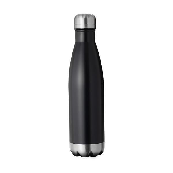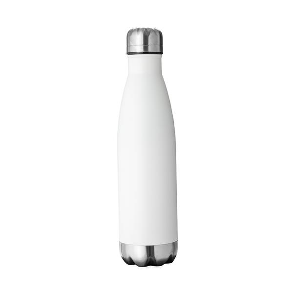Garrafa térmica em inox com tampa rosqueável, pintura em spray e capacidade para até 500 ml. Possui estrutura de parede dupla e vedação a vácuo, o que permite conservar a temperatura de líquidos por mais tempo.
