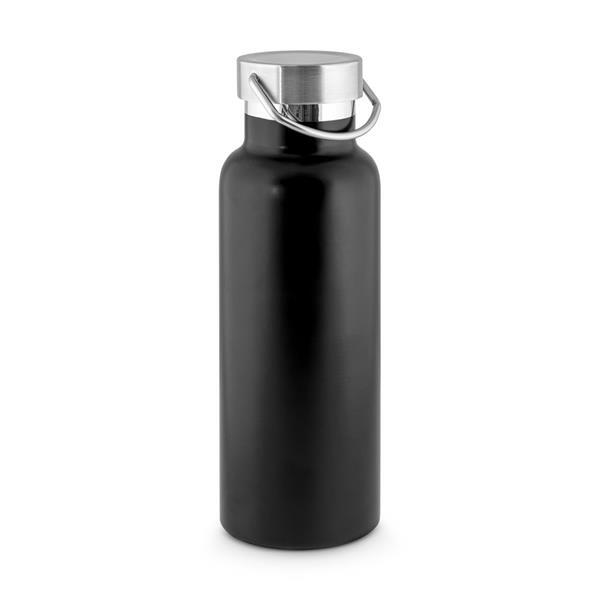 Garrafa em aço inox 36% reciclado com parede dupla, isolada a vácuo. Tampa com alça de transporte em aço inox. Capacidade até 810 ml. Fornecido em caixa de oferta em papel kraft reciclado. ø78 x 289 mm
