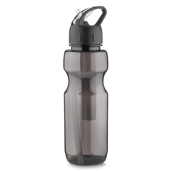 Squeeze plástico 700 ml com ice bar e canudo. Possui detalhes em relevo na tampa, basta levantar o bico para utilizar. Para uso do ice bar basta encher a barra com água e deixar na geladeira para congelar. Altura : 26,2 cm Largura : 7,5 cm Circunferência : 23,5 cm Medidas aproximadas para gravação (CxL): 10 cm x 7 cm Peso aproximado (g): 108