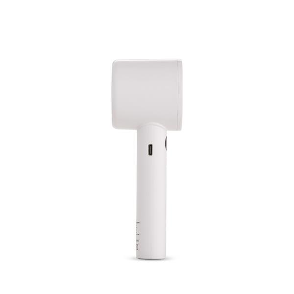 Mini ventilador recarregável em plástico e metal. Possui controle de velocidade ajustado por botões frontais, acionamento por chave seletora e painel de LED que exibe níveis de velocidade e carga da bateria. Acompanha cabo USB-C e cordão em nylon. Altura : 15,9 cm Largura : 5,5 cm Espessura : 5,5 cm Peso aproximado (g): 129