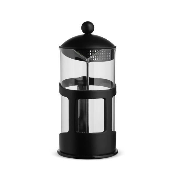 Cafeteira tipo pensa francesa em vidro com capacidade para até 1 litro, além de alça e detalhes em plástico. Possui tampa em plástico com êmbolo e tela em inox. Altura : 23 cm Largura : 14 cm Diâmetro : 9,5 cm Peso aproximado (g): 419