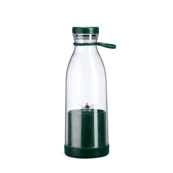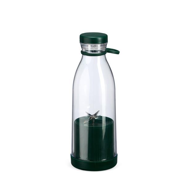 Garrafa plástica com base misturadora para frutas com capacidade máxima de 380 ml. Possui base rosqueável com lâminas em inox acionadas por botão, permitindo a mistura de frutas com líquidos, além de tampa rosqueável e alça removível em silicone para transporte. Observação: Para que o triturador funcione corretamente, o volume de frutas e líquidos não deve ultrapassar 300ml. Altura : 22,4 cm Largura : 7,9 cm Circunferência : 23,3 cm Peso aproximado (g): 259